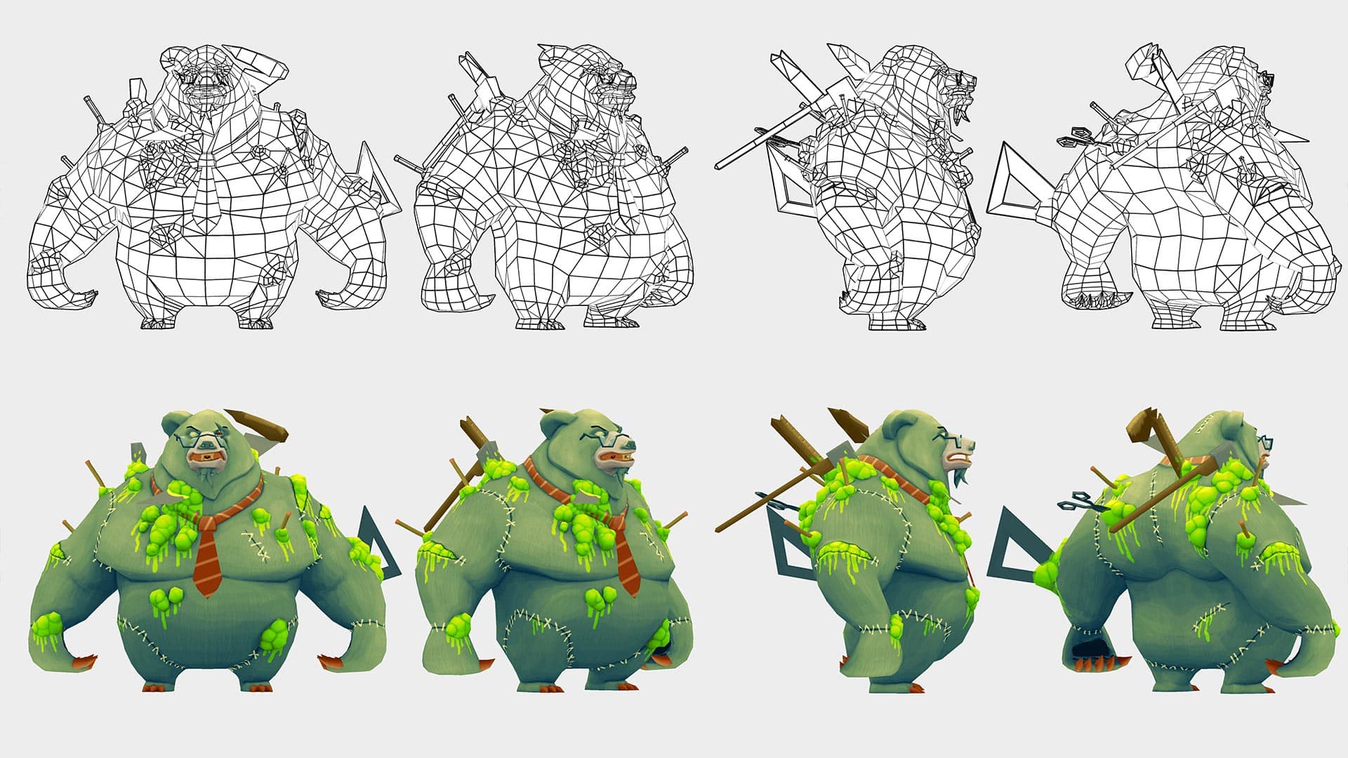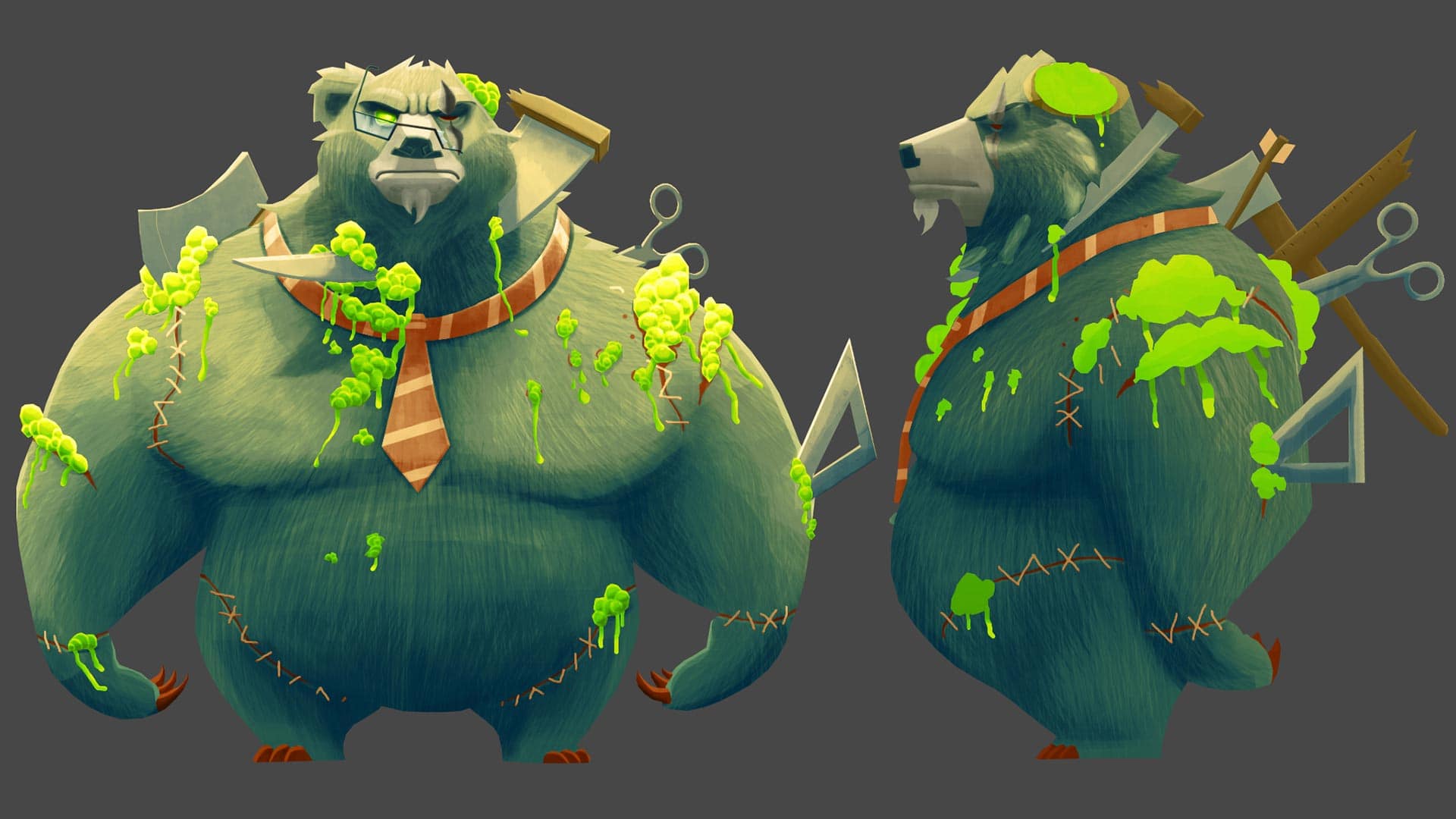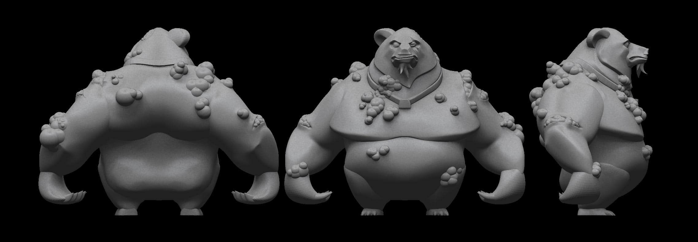 Character creation from scratch : Sculpted in Zbrush, retopologized in 3DCoat, textured in Photoshop, rigged and animated with Maya. Integrated in Unity3D.